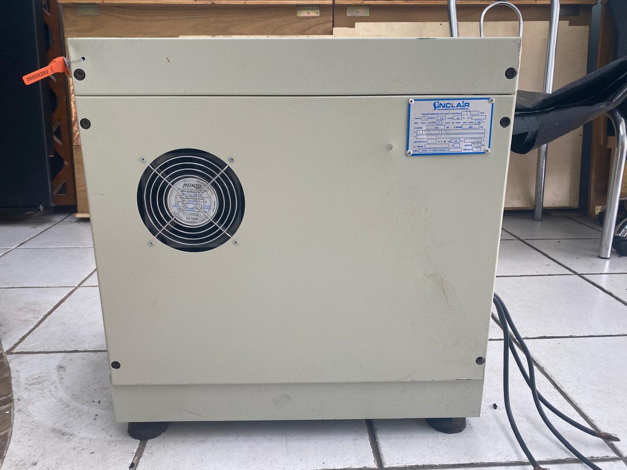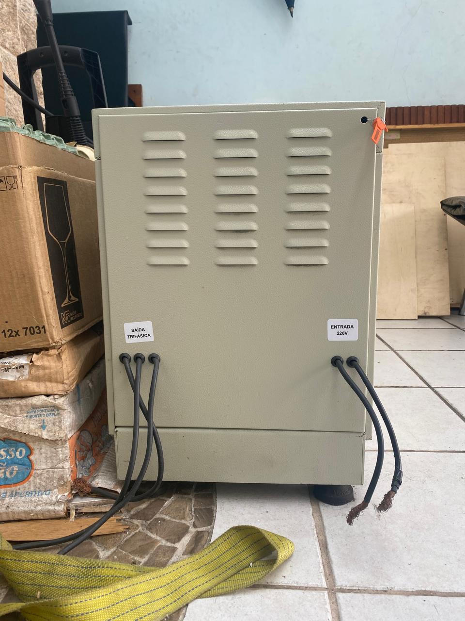 Esse transformador gera uma fase falsa para poder rodar o motor trifásico.